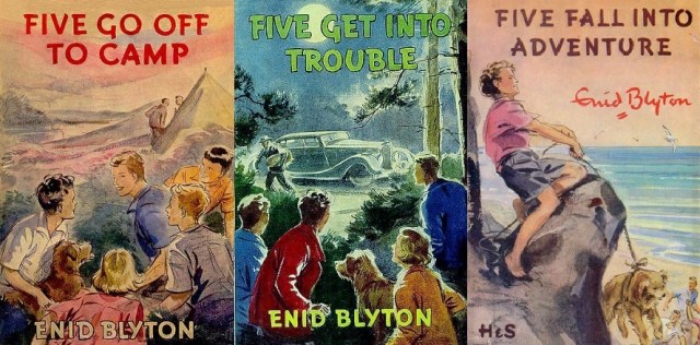 Early edition dustjackets from “Five Go Off to Camp”, “Five Get Into Trouble” and “Five Fall Into Adventure”, all illustrated by Eileen Soper.