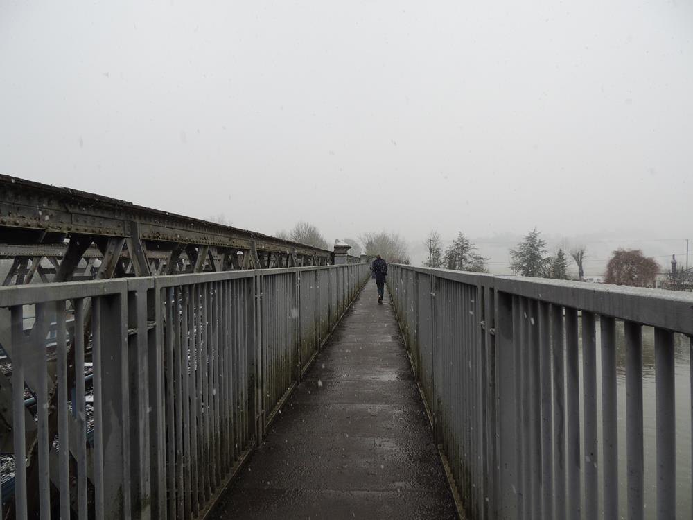 The view from the bridge is certainly spectacular in any type of weather, and even last time in the fog you got some beautiful views and colours, but in the snow, it was certainly more of a monochrome view. There were less colours, with it being the middle of winter and all, and the low lying cloud made the world greyer than the fog had done in autumn. You could see the silhouettes of the trees for a good stretch of the river, but on a clear day you can see even further up stream. You can’t really get a good view of downstream from the bridge because of the railway bridge being in the way.