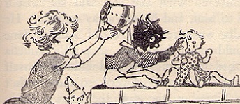 Having an early edition (7th impression 1947) to hand I can see the quoted description of Amelia Jane Rice has missed out the word long in describing her black curls (but at least she’s not blonde like in some updated texts). Rice also refers to Nanny’s scissors in the original texts it is Nurse not Nanny who cares for the children (Nanny appears in the updated versions.) I point this out as up until now (leaving aside the Jo/Joe/Jo-Jo issue) Rice has used names and information from the original texts.