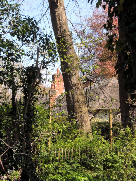 We then doubled back on ourselves, keeping to the road this time (does that count as doubling back?), so I could get some better pictures of Old Thatch. From what I could see, the garden was waiting to burst forth into bloom, but it was still nice to see the place through a gap in the hedge. I’m very much looking forward to going back and having a look soon!