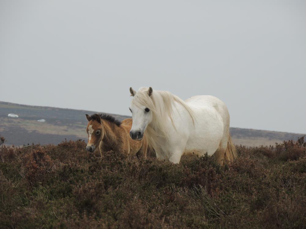 A wild mare and her young foal on top of the Long Mynd. A LUCKY Wildlife shot.