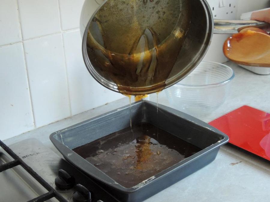 Pouring the mixture into the pan