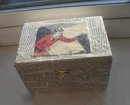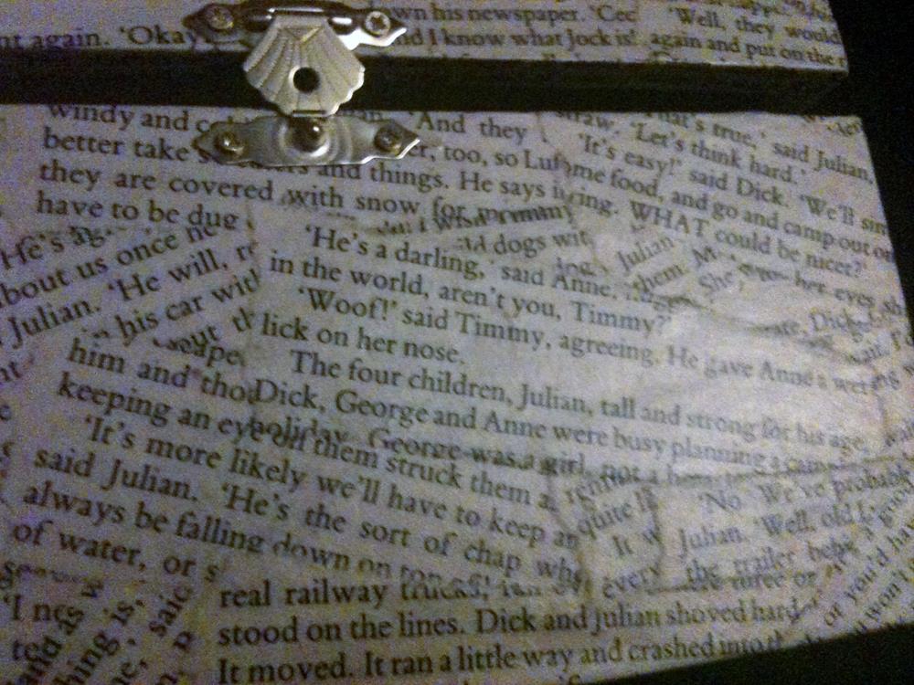 Here’s another present I made for Stef: a box decorated with pages from some of Blyton’s book.