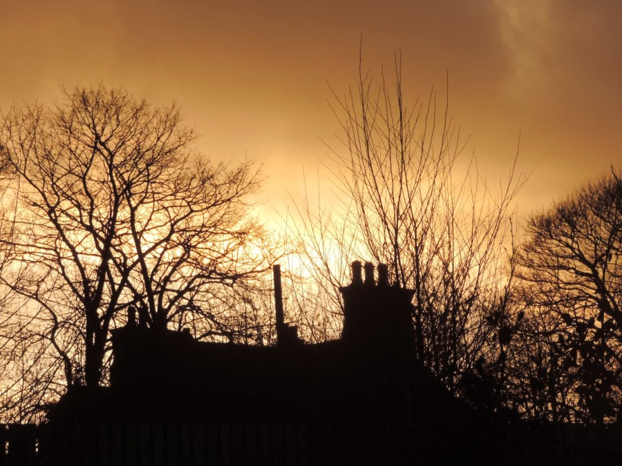 Sunset behind an old farmhouse