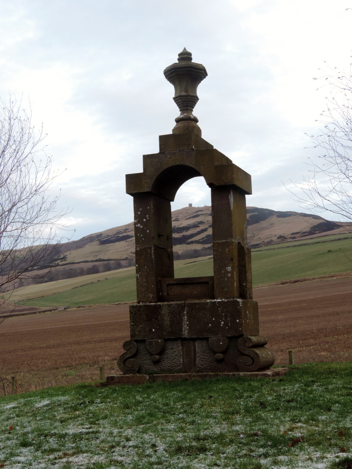 Strange monument in Newtyle (Kinpurney Hill Tower in the background)