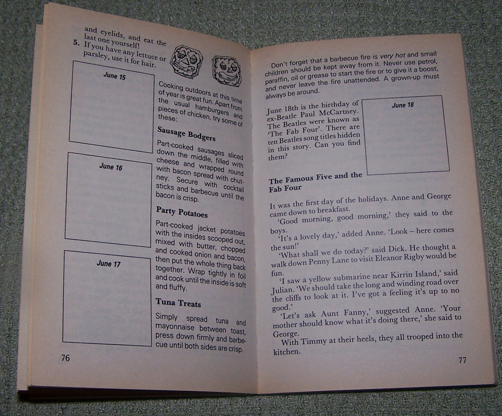 The feel of the jokes that the book contains are what you might class as ‘bad’. January for example has “what is the coldest form of transport?”A b-b-b-b-b-bicycle!”, so its that kind of bad. There aren’t too many jokes mind, so that’s a relief. I can’t imagine the Famous Five telling jokes that are quite so awful (but there is no accounting for Dick’s sense of humour after all!)