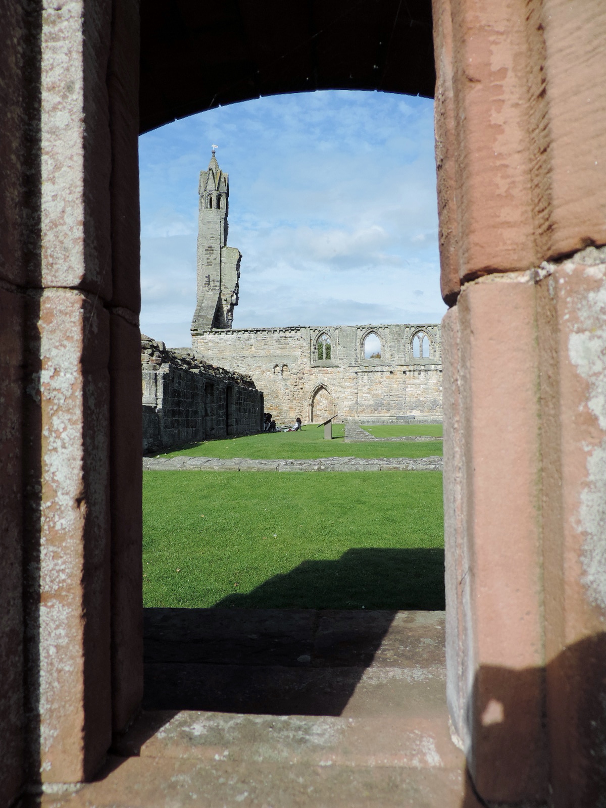 The front remaining tower through a window