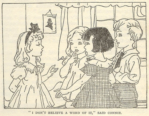 This time she livens things up by introducing Connie, nicknamed Curious Connie by Jo because she can never stop poking and prying into things. She has to stay with the children and their mother (I assume their father is still around, he just hasn’t been mentioned since the first book) as her own mother hasn’t been well and needs to go on a long holiday, once again providing an excellent reason for a new character to appear (there was a similar reason given for Cousin Dick coming to stay).