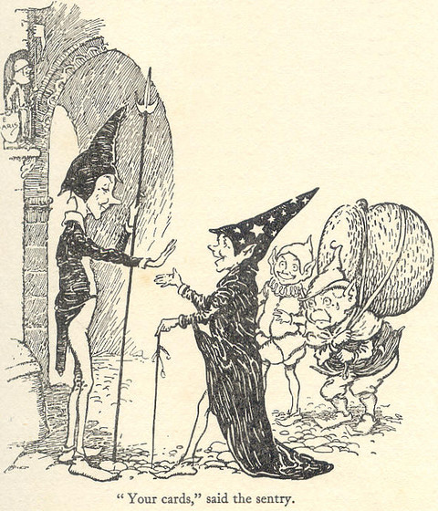 These three sneak into the party by pretending, with the help of a ‘friendly’ witch, to be a conjuror and his two assistants. But it all goes horribly wrong when the trick the witch, who turns out to be wicked Witch Green-eyes, gave them results in the kidnapping of little Princess Peronel. Hop, Skip and Jump keep exclaiming ‘oh my goodness’ and enrage the King, who says that they should be saying ‘oh your badness’. He then tells them that they are banished until they can find their goodness.