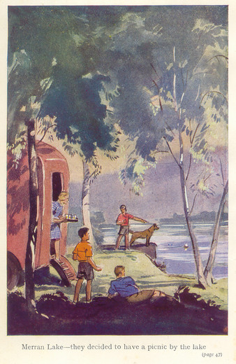 Frontispiece of Five Go Off in a Caravan, 1951 Hodder & Stoughton 1st Edition, by Eileen Soper. Camping like it used to be.