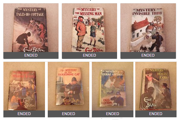 Firstly, I had my eye on a selection of Five-Find Outers titles on eBay – all first editions with dust jackets which started at a very enticing 99p each. I put them all in my watch list and checked back on them a few times, seeing them start to creep up as the week went on. Even The Mystery of the Invisible Theif was being bid on. Several went past my (admittedly cheapskatey) budget of £5-10 for a book, and of course, I already HAVE all of these titles in later impressions without the jackets. (I don’t buy books I already have unless it’s a serious improvement on what I already have. Even then I usually still don’t as I can’t justify the spend.)