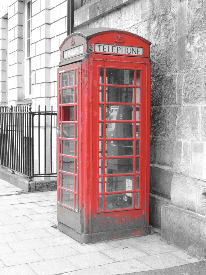 A red police box highlighted in selective colouring