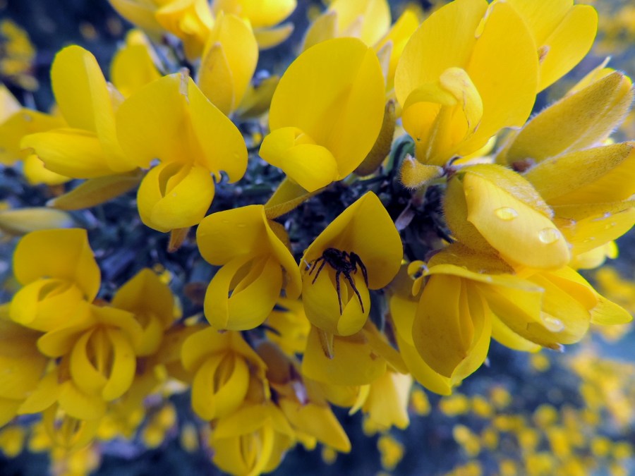 Raindrops and a spider in gorse