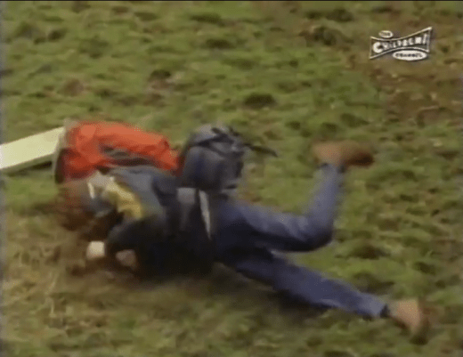 Then there’s the problem of the extremely clumsy children who seem lucky to be alive mostly. We had Lucy-Ann falling down a slope in the last episode, and here it is Jack’s turn. Yes it’s muddy and his foot slips but there was no reason for him to tumble all the way to the bottom.