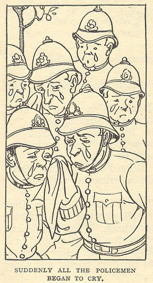 They then share the strangest collective dream which exactly sums up the way dreams go. There’s ice cream you pay for with marbles, but it turns out to be whistles and not ice cream at all. The whistles summon policemen who get pushed into a swimming pool of their own tears, where they turn into fish. The children get into an aeroplane to escape the land of dreams – but the plane turns into a bus and then a boat because they are still dreaming (this resonates a LOT with me as I’m always having those awful dreams where I think I’ve woken up but haven’t, over and over!).