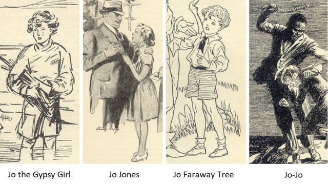 Also appearing with the Jake-the-gypsy is one of our Jos. This one is Ragamuffin Jo, presumably short for Josephine but also known as Jo the Gypsy girl. We also have Josephine ‘Jo’ Jones, a first-former from Malory Towers, not to be confused with a boy called Jo who is in the Faraway Tree Series. Neither should you confuse any of those Jos with Jo-Jo, the servant and criminal from The Island of Adventure.