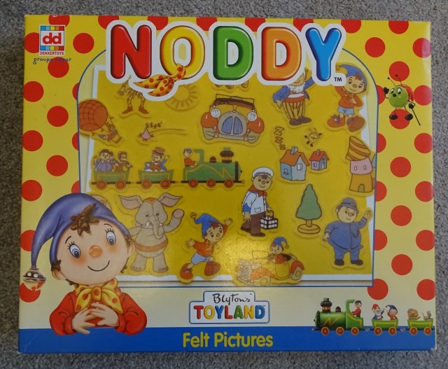 A while back I did a post about the vintage Noddy Fuzzy Felt set I had bought. Well, I’ve just bought another Noddy Fuzzy Felt set, but this one is quite a bit more recent. The first one is from the mid 1960s, and the newer set is from the early 2000s. So not exactly brand new, around 15-18 years old, but it seems very shiny and new in comparison.