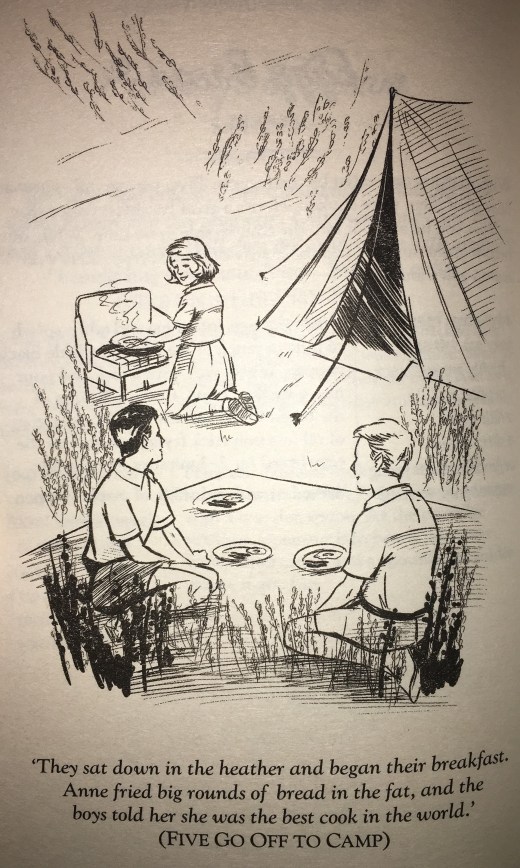 The introduction touches on something I’ve pointed out before, that Blyton’s Famous Five menus are a strange mix of war-time food and also almost glorious excess. She doesn’t include exotic foods like bananas – because these weren’t available during the first half of the series, yet the children eat far in excess of what would be available on rations. Of course the Famous Five’s Britain was never at war – that would have hampered their free travel and seaside holidays!
