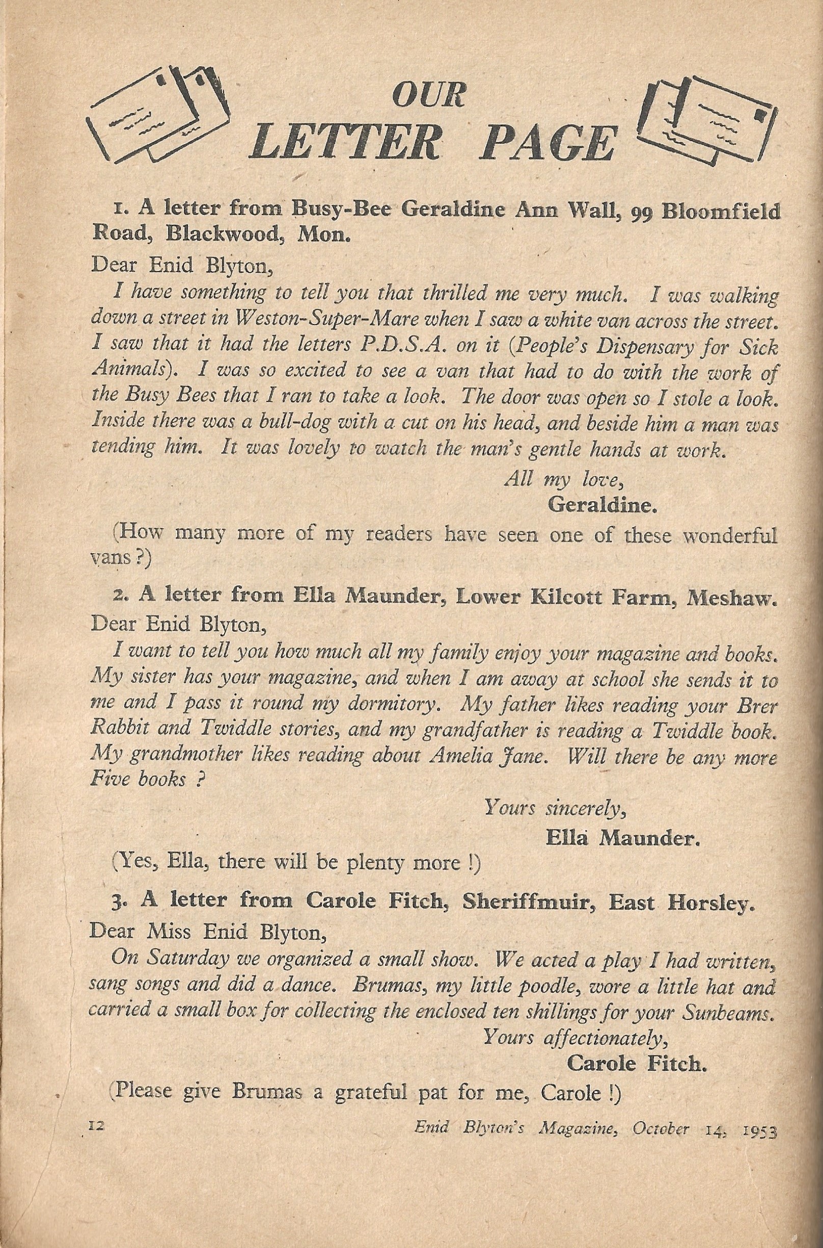 Another three letters from girls but it’s interesting that Enid has now started adding little replies to the letters.