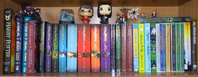 This is mostly my Harry Potter shelf, to be honest! When I first moved in I had Harry Potter, Malory Towers and St Clare’s together, as they are all, technically, boarding school stories. But then my Harry Potter collection expanded and I didn’t like having my remaining Blytons spread over three part shelves, so I did some rearranging. I would have liked to have the Blytons on the top shelf but then I’d have to move the shelf heights around.