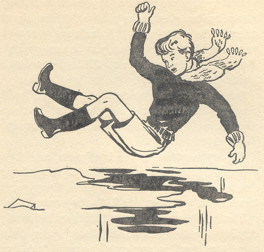 It was grand fun to be on the ice that clear winter’s morning. Roger fell over quite a lot, and groaned and rubbed himself, quite envious of the others, especially of Snubby. Snubby did not skate as gracefully as either Barney or Diana but he was as usual, full of idiotic tricks, leaping in the air on his skates, twisting himself round in never-ending circles till he fell over in giddiness – and altogether behaving in what Diana called  a “very Snubby-ish way.”