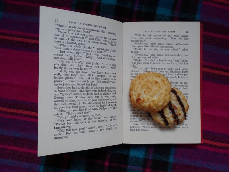 The Famous Five also indulge in macaroons, but only in two books – Five on Finniston Farm and Five Go to Demon’s Rocks. In Finniston Farm the little shop in the village makes marvellous ones – even Junior raves about them saying he buys thirty a week!