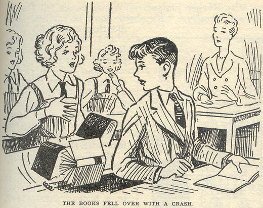 It’s Bobby’s turn next and without the aid of any joke books she hatches a plan. She sends a false note to Miss Roberts, luring her from the room. While she’s gone Bobby changes the time on the clock so that they get out of class ten minutes early and thus avoid a test.