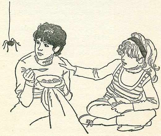 Although Julian and Dick mention some tricks played by boys at their school I can only think of one trick actually played out across the 21 books and 8 short stories. In Five Go to Billycock Hill Toby dares to play a trick on George. She says she’s not afraid of spiders so he dangles a huge fake specimen over her at their camp, and manages to give her rather a fright.
