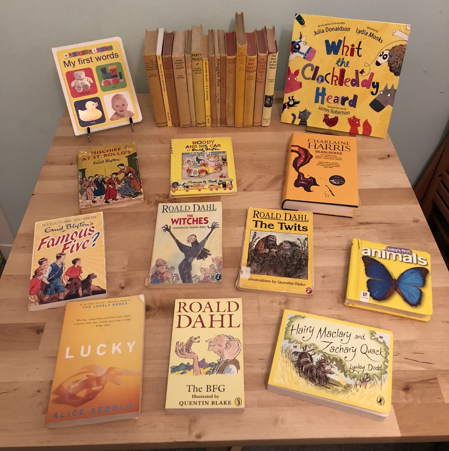 It was raining on day 38, so I thought I’d go for a sunny yellow display. Several Blytons here.