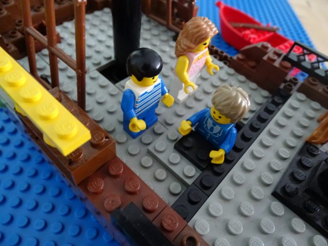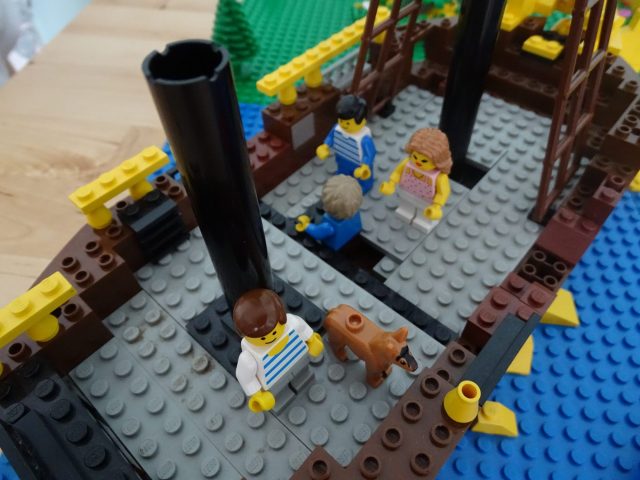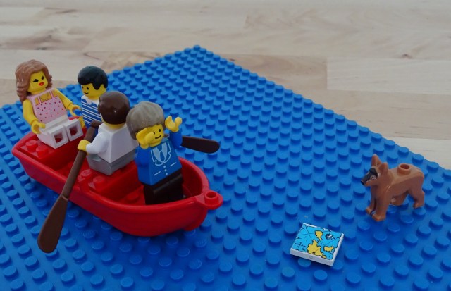 Then after various thrilling events that I made no attempt to recreate with plastic bricks, George smashes up the villains’ boat and they escape.