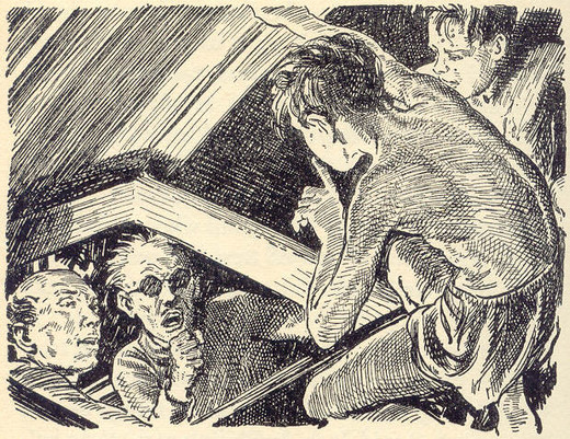 Bill gets a little choked up when he discovered that the Mannering and Trent children chose to search for him instead of making for safety in The Sea of Adventure.