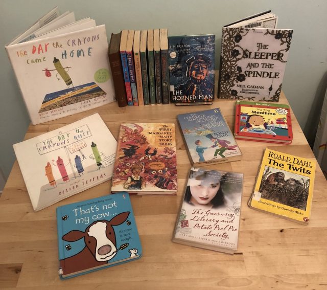 Most of the rest I have acquired since starting work at the library – too many opportunities to rifle the sale shelf! – and a couple (Sleeper and the Spindle and Mealtime) are from my mother-in-law’s branch as she also worked in a library and had too many opportunities to rifle the sale shelf.