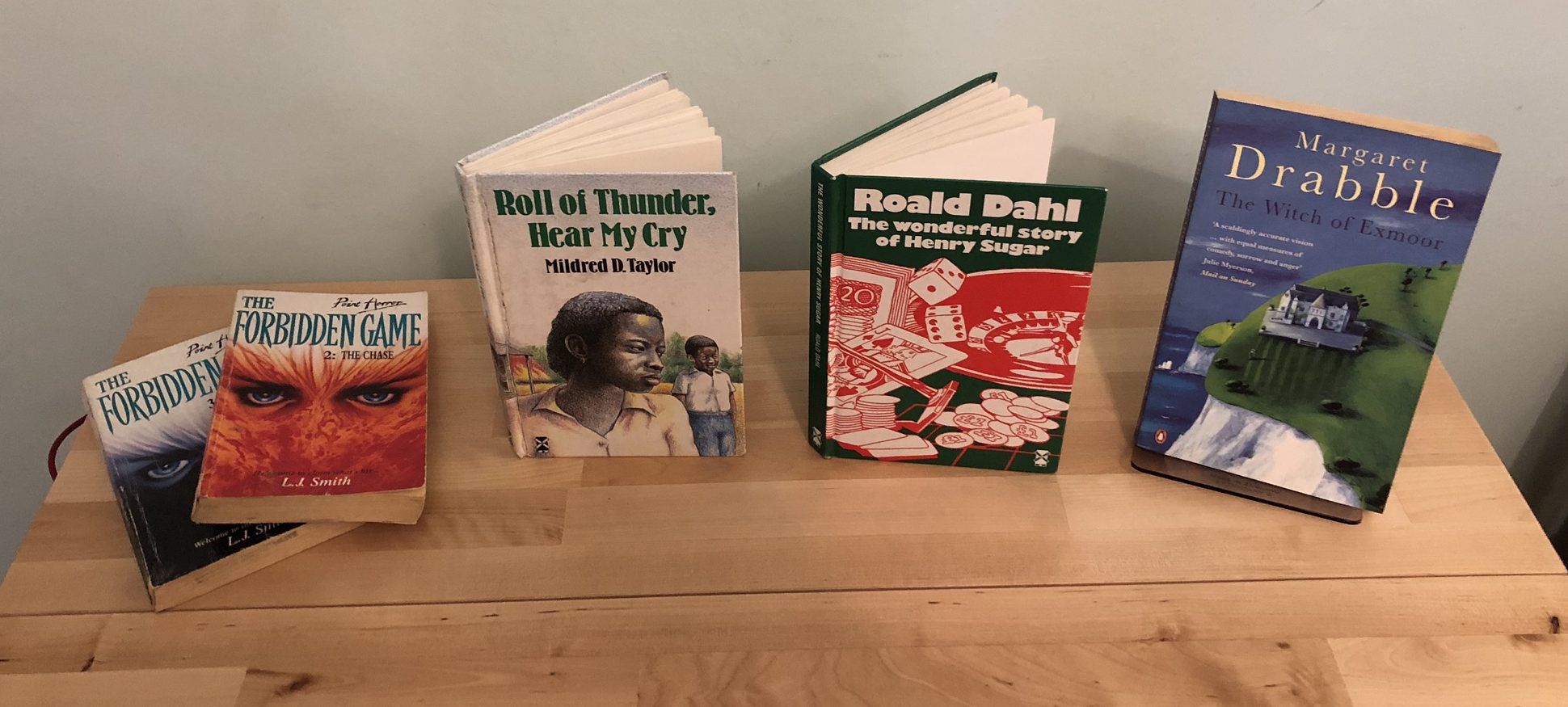 Some of these (The two Roald Dahls and the Margaret Mahy one) were bought by my mum when I was a child. There were many more (several Malory Towers books amongst them) but these are the only ones I took when I moved out.