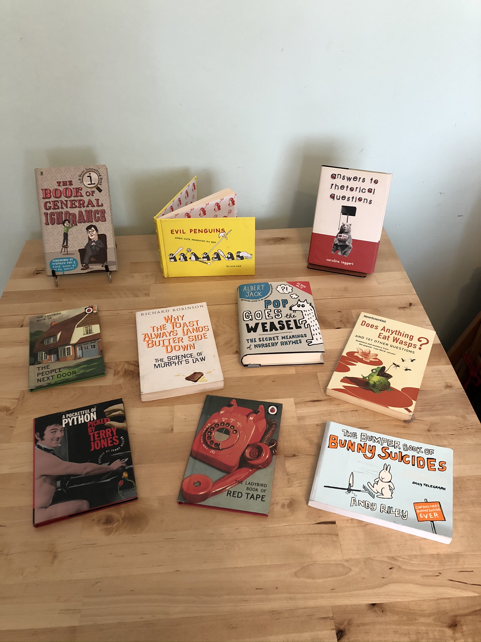 This is the second time I’ve forgotten to include the Famous Five for grown-ups books by Bruno Vincent! Those also live in the hall with other, much funnier, books.