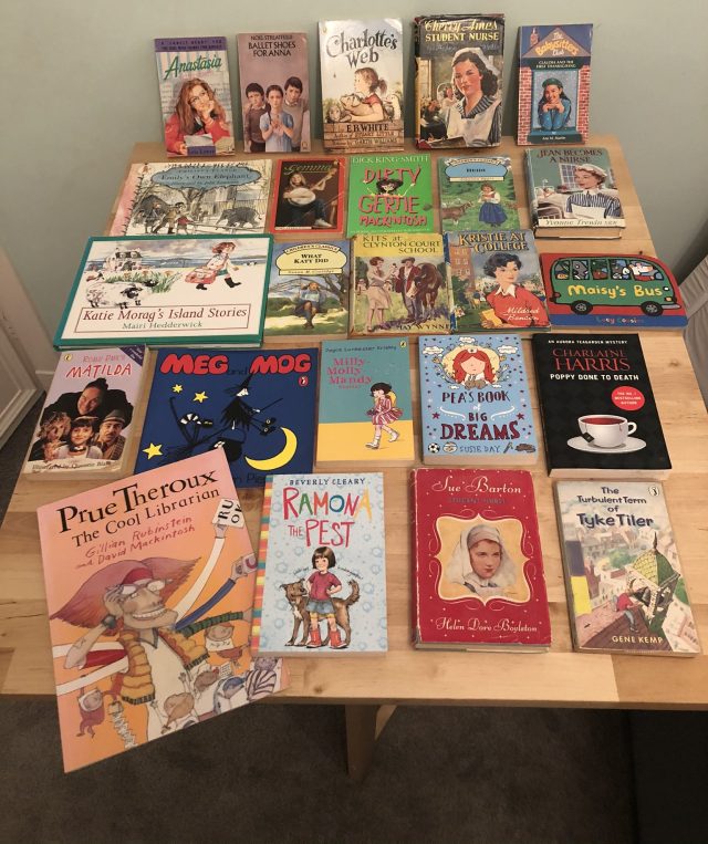 I only had five pink books so the rest I borrowed from my sister (desperate times and all that.)