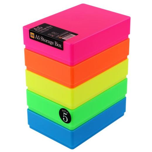 The boxes were Weston Boxes’ A5 Plastic Storage Box. They come in packs of 5 or 10, so I bought a 10 pack of the multicoloured ones. (If you want to be grown up or match the boxes to your decor you can get packs of a single colour, including clear!)