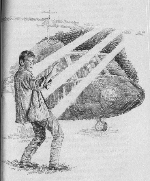 This book starts with Nan coming home sick from school. She asks her twin, Bert to do her babysitting job that night. It is with Artie, the most hyper boy on her list of babysittees! Bert agrees, and there is a wonderful sequence of hi-jinks young Artie gets into. (He’s not a bad kid, he just has a LOT of energy!) He insists on playing hide-and-seek, and runs outside. When Bert follows, with his flashlight, he sees a UFO! First an intensely bright light stops him in his tracks, then he sees a flying saucer looking pattern of multi-coloured lights spinning in a circle. These lights recede in the distance and disappear! Artie (who was hiding) didn’t see them and thinks Bert is “playing pretend”
