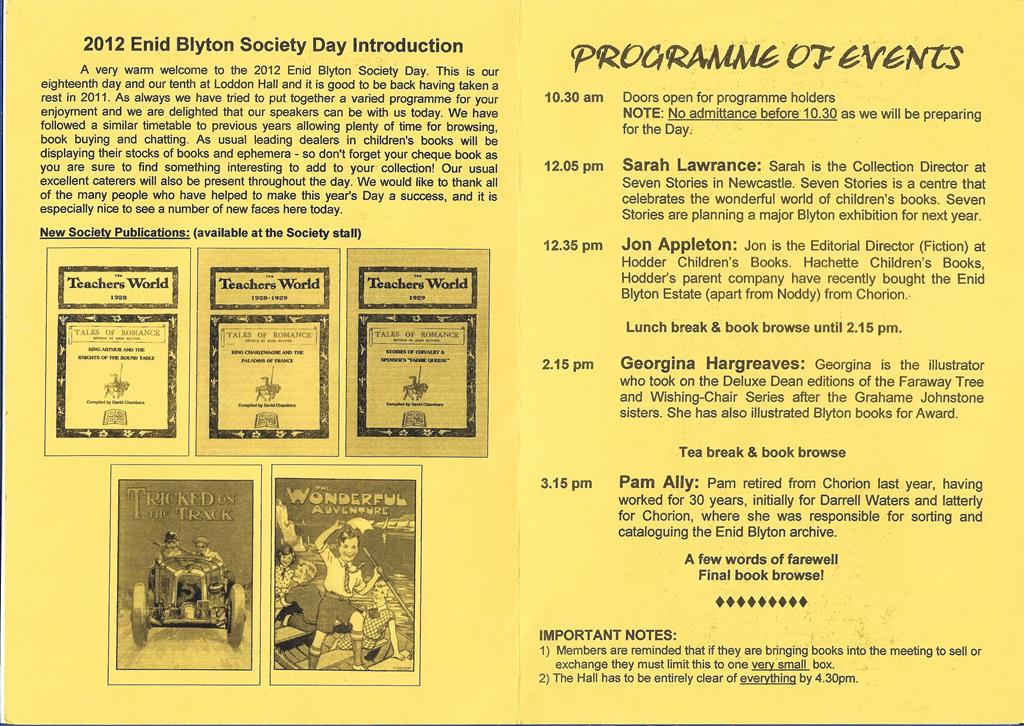 This 1997 one is an advert for the Enid Blyton day – back when the Society was called the Literary Society, and before it was held at Loddon Hall. I wish I’d been able to attend this given the amazing line up, but I was only ten years old and I don’t think I would have really appreciated it back then.