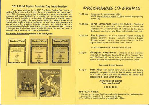 I’m one of those people who keeps everything. Old schoolwork? Check. Ticket stubs? Check. Programmes, leaflets, flyers, wedding favours…? check. Unsurprisingly some of those bits relate to Enid Blyton.