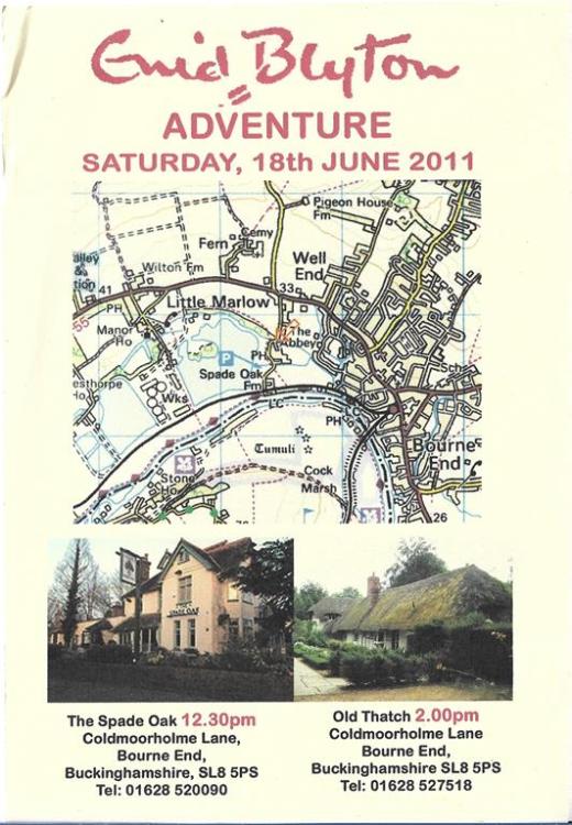 And an Enid Blyton Adventure Trail leaflet, Stef tells this was an Enid Blyton Society get-together where they had lunch at the Spade Oak and then visited Old Thatch after.