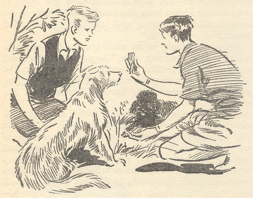 And there’s another similarity – Jo appears in both books. She assists in the search for George earlier in the book (leading them to Ravens Wood in Fall Into Adventure, going to speak to Spiky and bringing him to the boys in Plenty of Fun), and then joins them for the rescue at the end.