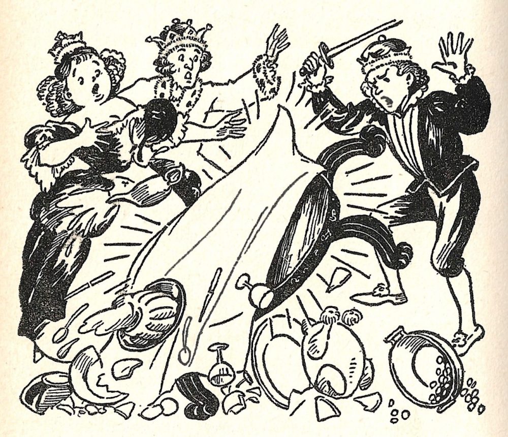 The last magical story to write about is The Enchanted Table. This is an odd one for me as nobody comes off very well in it. The table is mistreated, but not terribly – the children are careless in kicking it or spilling things on it while eating – so the table starts hitting people, then walks out. It has some adventures, finding itself in places no better than where it started, before ending up somewhere just right.