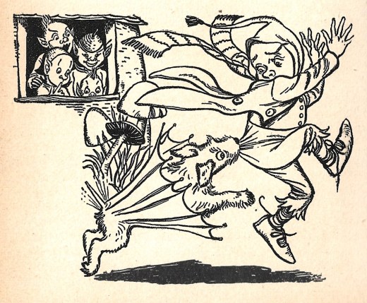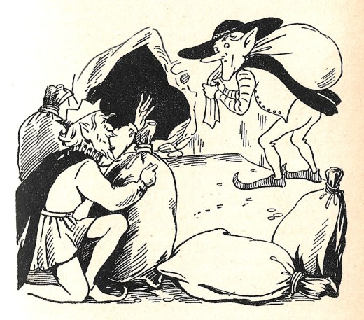 In an alliterative feast we have a Tappetty Witch (the giver of Winkle-Pip’s wishing suit), Tell-Tale Tippy and Enchanter Too-Tall (receiver and giver of the magic walking stick), Tippit the snoozy gnome, Tiptoe Village, a Pippit…