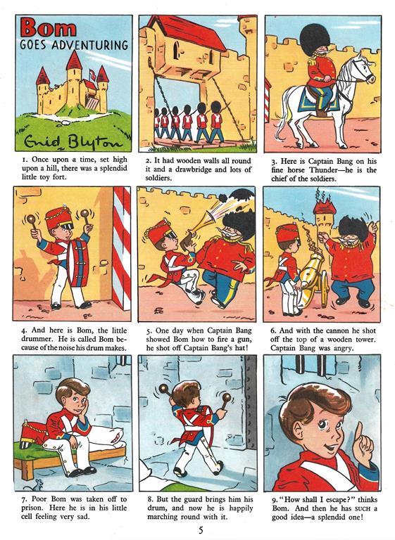 The stories don’t really follow on from each other, though they don’t contradict each other either. One story begins with a reminder of Captain Bang who chased Bom after he ran away, and who then appears again and having spotted Bom gives chase again so there is some continuity. That story ends with Thunder – Captain Bang’s horse – refusing to stop when they catch up to Bom as Bom had done him a good turn, but somehow I expect that we haven’t seen the last of the captain!