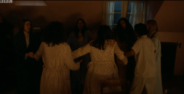 We get a hint into what’s to come as Gwen discovers a little drip by her bed and tries to get Ellen to swap her under false pretences, but the other girls stop her. You’d think Ellen would be pleased but she complains that she can’t please everyone at once – just a tiny hint of the attitude of book Ellen I suppose, though so far she has seemed fairly happy.
