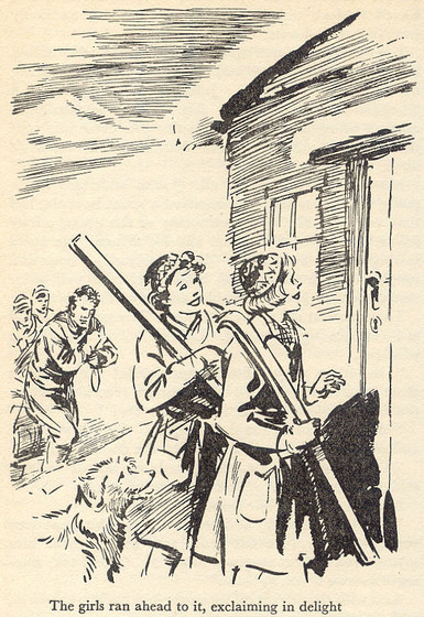 Naturally Mrs Jones is sceptical. The house is designed for summer stays, not winter. There’ll be nobody to ‘do’ for them, and (probably) she has whole larder-full of food she had planned to feed them. But still, they are nothing if not persuasive and get their own way. Morgan, the enormous son of Mrs Jones lugs their stuff up on a sledge, and the Five are alone at last, and although they don’t know it yet, poised for another adventure.