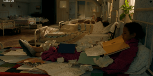 rather out of the blue and Gwen, being Gwen later remarks that Ellen will have no friends with that attitude which Ellen overhears. Shortly after Ellen says to Jean that she didn’t mean to be rude. I feel like the show has tried to make Ellen a bit more rounded but she swings between behaving like a regular, happy girl and a snappy, studying obsessed girl. Maybe that’s more realistic but it makes the snappishness seem to come out of nowhere. In the book the other girls (and the narrative) mention how Ellen is always snapping about noise, always studying and so on. The show has shown us she is stressed about school work but perhaps not to the same extent as the book.
