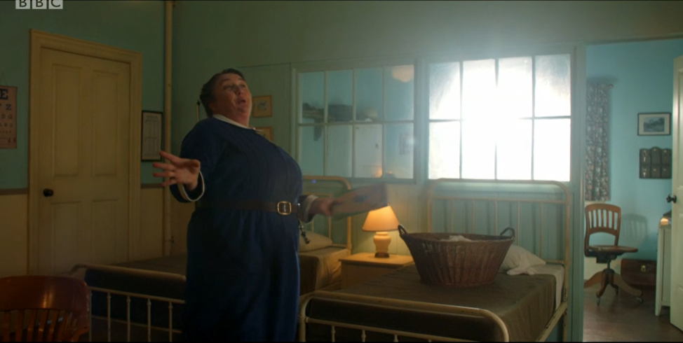 The other is Matron dancing around the San to a confiscated record. (There’s another subplot about a ‘dance’ that turns out to be the girls in their uniforms dancing around the common room with some sandwiches and sausage rolls).