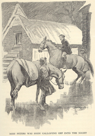 Miss Peters and Bill didn’t see eye-to-eye at first, Bill’s day dreaming drove Miss Peters demented, in fact, and she banned Bill from seeing Thunder. Bill thinks the woman is heartless but Miss Peters proves just the opposite. When Thunder develops colic she is out of bed like a shot, and rides off into the night to fetch the vet. She then stays up the rest of the night to take care of the horse. She also rescues Mavis whom she finds, soaking, by the side of the road that night – all round being a hero!