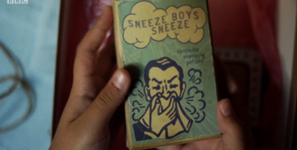 This episode doesn’t really resemble anything from the Second Form book. Firstly we have the sneezing trick – as played by Alicia and Darrell in the Third Form.